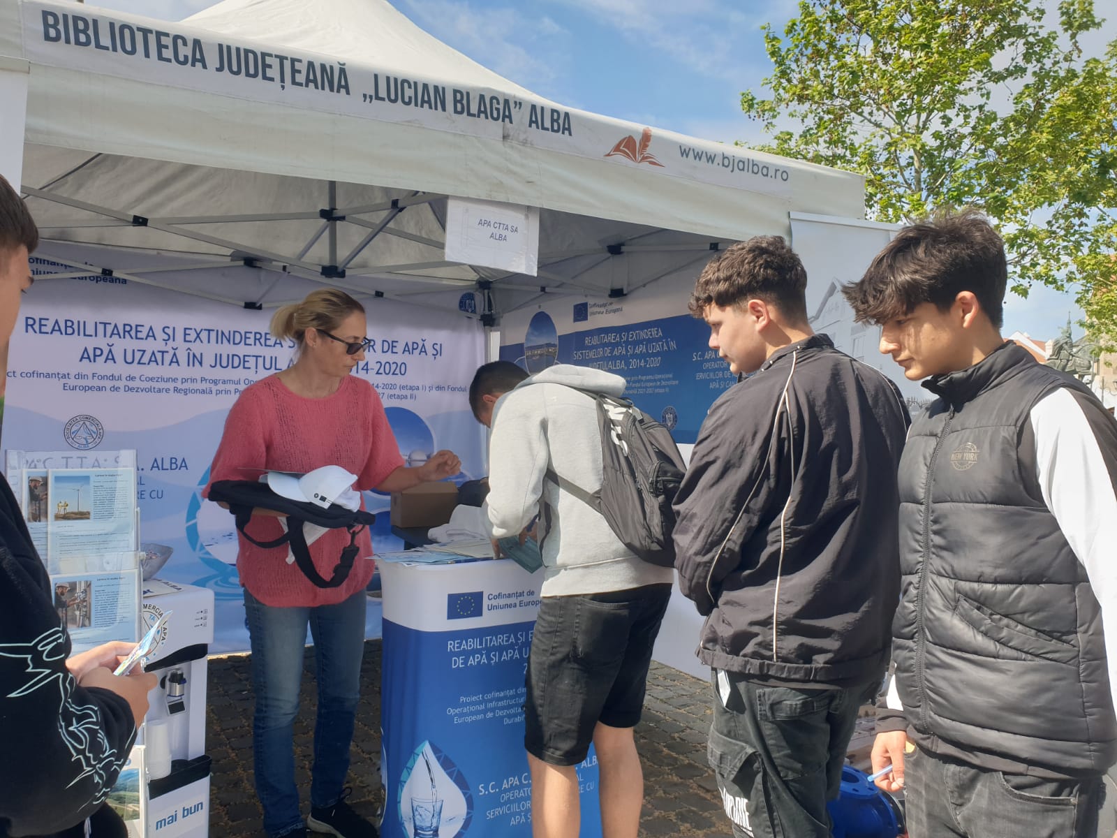 La standul informativ, vizitatorii – atât din Alba Iulia, cât și din alte localități ale județului – au primit materiale informative și promoționale (pliante, hanorace, șepci, tricouri, pixuri), dar și explicații directe despre lucrările realizate, etapele de implementare și beneficiile concrete ale proiectului pentru comunități urbane, rurale și montane din județul Alba.